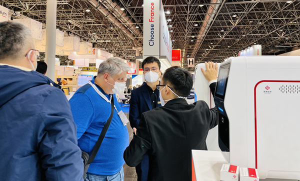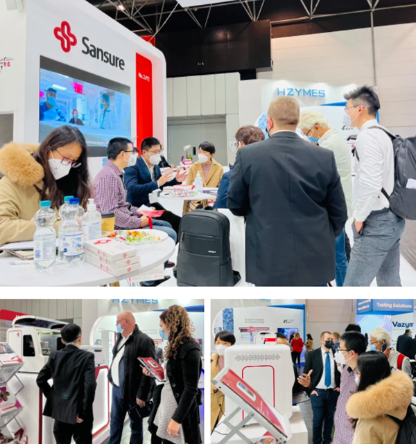 在bb贝博艾弗森展台,“全自动解决方案”“半自动解决方案”“新冠整体解决方案”,以最大程度满足不同国家和地区客户、不同应用场景检测需求的特点,获得了众多来访国际客户的好评。尤其是iPonatic四通道产品,以其便捷、易操作、检测时间快、检测项目多等优势吸引了会场一大波新老“粉丝”的目光。